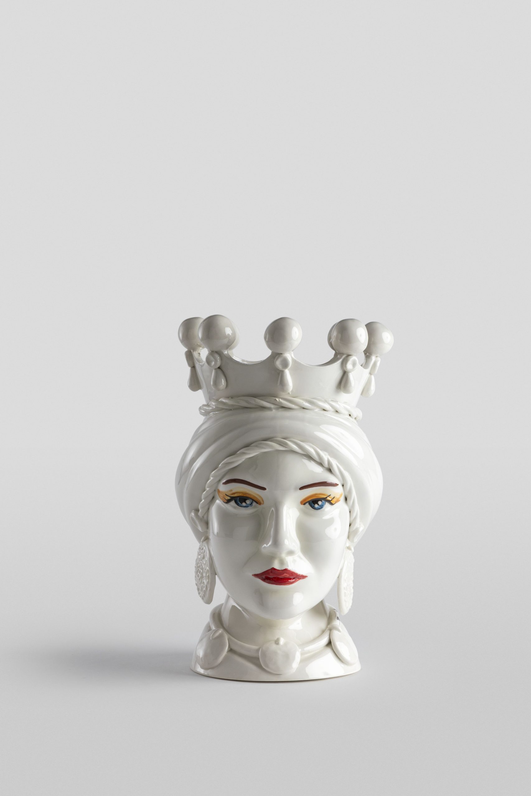 Testa di moro femmina 40 CM decoro tinta unita BIANCO LUCIDA di Caltagirone.